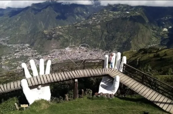 גלו את היופי של החלק העליון של אזור האמזונס מ-Baños de Agua Santa. ביקור בבית העץ ובנדנדה שבקצה העולם. התפעלו מנוף מרהיב של המפלים והר הגעש טונגורהואה Tungurahua, המתנודדים בעננים.